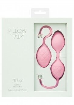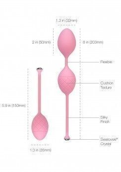 Le Frisky Pleasure Balls sono perfettamente ponderate per aumentare la tua voglia e rafforzare i muscoli. Indossali nel tempo e nota il tuo entusiasmo per la costruzione. Queste squisite sfere di silicone forniscono un movimento a dondolo stimolante con i tuoi movimenti naturali. Frisky ha una trama di cuscino imbottito che li mantiene in posizione e un elegante cordino in silicone che abbaglia con il cristallo Swarovski®. È un segreto sexy che ti piacerà mantenere. • Finitura in silicone super setoso di alta qualità • Sfere ponderate per divertimento e forza • Movimento oscillante interno • Progettato con semplice eleganza per il tuo divertimento.