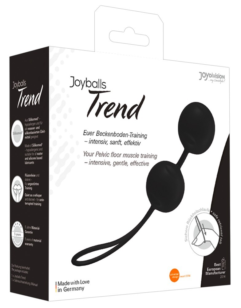 Le “Trend ‘Joyballs realizzate in Silikomed® di grado medico e piacevoli sulla pelle, assicurano voglie stimolanti con i loro movimenti delicati. Questa stimolazione dona una sensazione più intensa durante le vostre relazioni intime e garantisce un rafforzamento duraturo dei muscoli pelvici. Con il loro diametro di 3,5 cm e un peso di 82 g, queste palline possono essere inserite facilmente e hanno un effetto efficace. Grazie a una costruzione senza cuciture con un anello di prelievo integrato, sono impermeabili, facili da pulire, assolutamente igienici e sicuri. Materiale Silicone